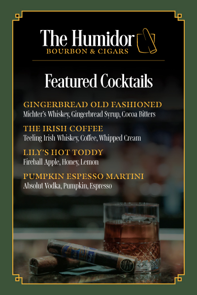 Get your crew together to enjoy cigar specials, a curated drink menu, and live entertainment!